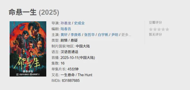 《命悬一生》由正午阳光出品,孙墨龙(《大江大河之岁月如歌》《开端》《山海情》导演)、史成业(《琅琊榜》《父母爱情》摄影)执导,黄轩、李庚希、张哲华、白宇帆、尹昉等出演,改编自陆春吾的畅销悬疑小说《一生悬命》。