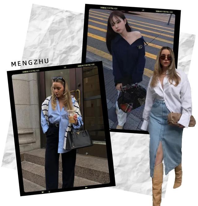 爱穿衬衫的姐妹脖子短就不要把扣子扣到头了,扣子解个两个下来打造一个小v领就行。