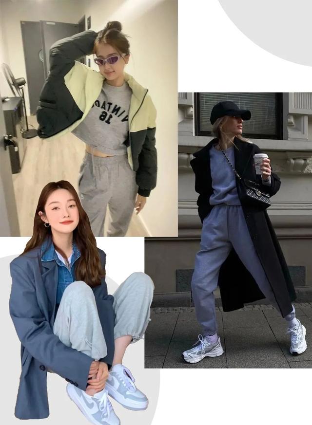 还有近两年超时髦的卫裤,这种休闲的版型对身材的包容性也很强,不想搭配的姐妹直接来个套装,别提多好穿了!