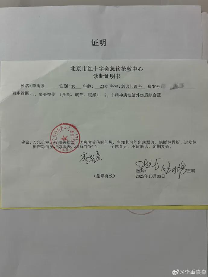 昨晚(10月15日),演员李禹熹发文喊话19岁男演员荣梓杉,曝男演员荣梓杉恋爱期间出轨打人,她因此一度确诊中度焦虑和抑郁。