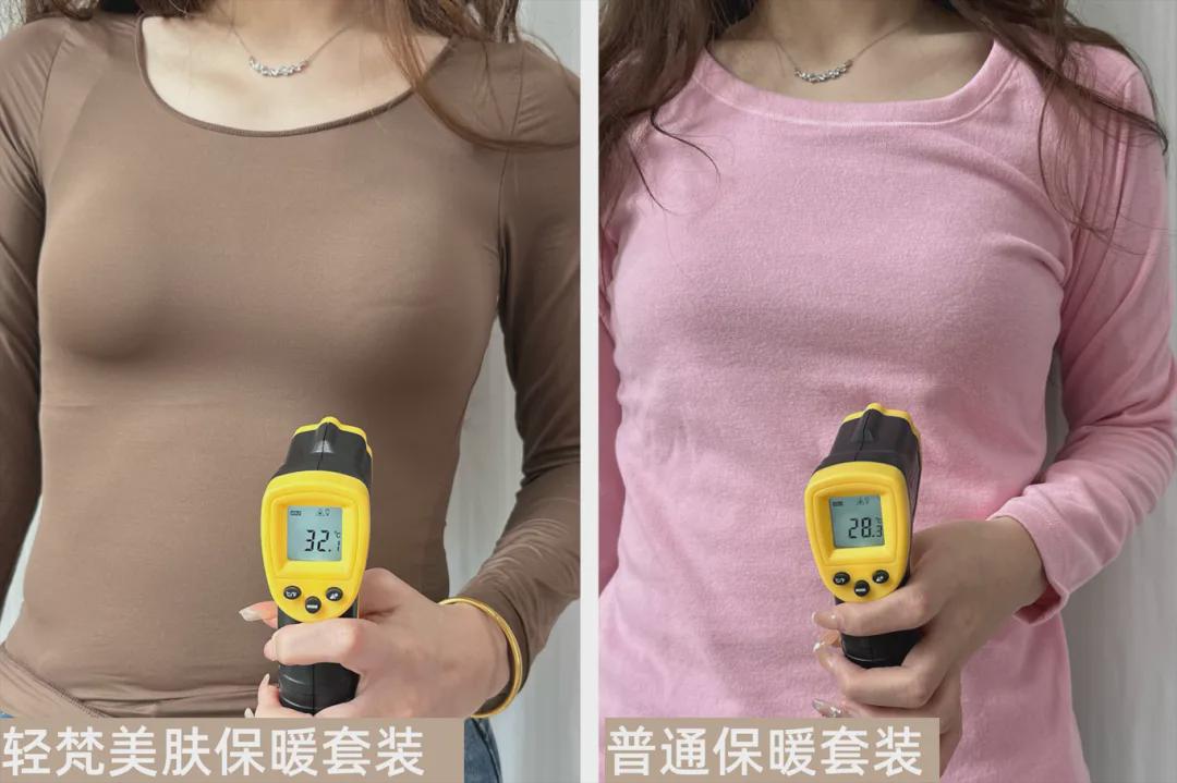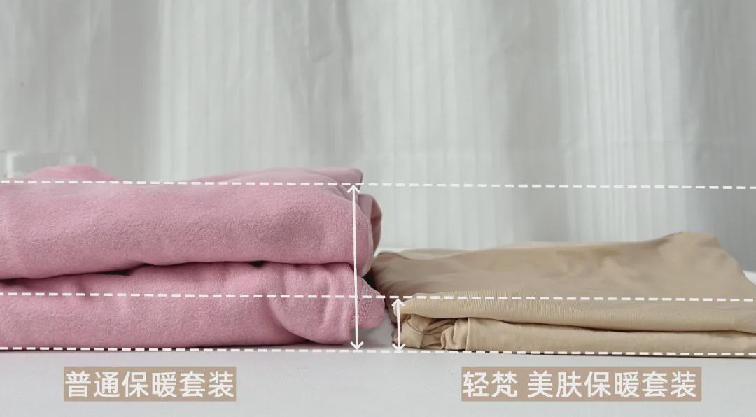毕竟随着纺织技术的进步,这款美肤衣已经升级做到常规保暖套装面料的1/5,