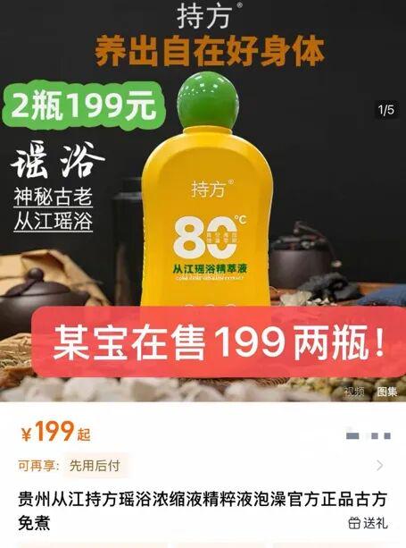 我们现在开团持方从江瑶浴精萃液,某宝在售价是199元2瓶。