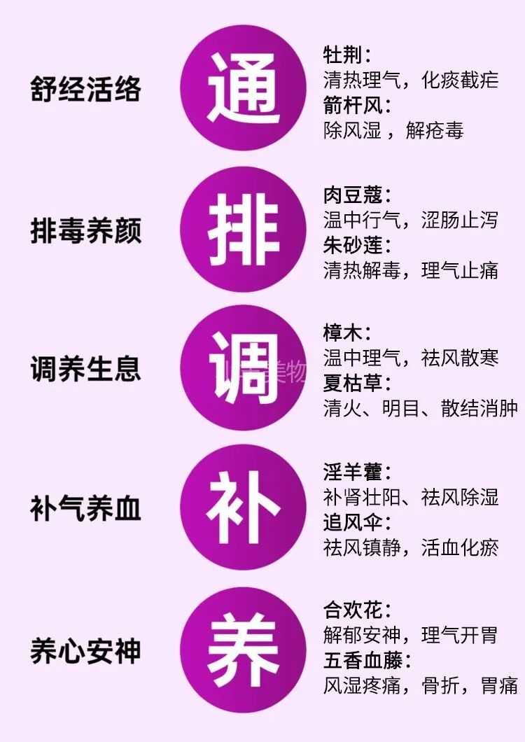 多种草本经高温烧煮后,借助热力协同作用,在泡澡的过程中,通过“通、排、调、补、养”五步,重建我们身体内在平衡;