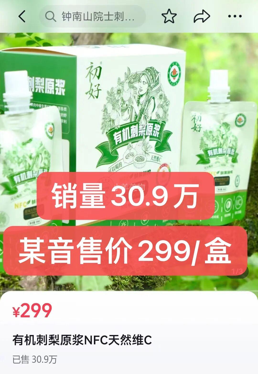 初好有机刺梨原浆日常售价要299元/盒(共20袋),算下来1包要14.95元。