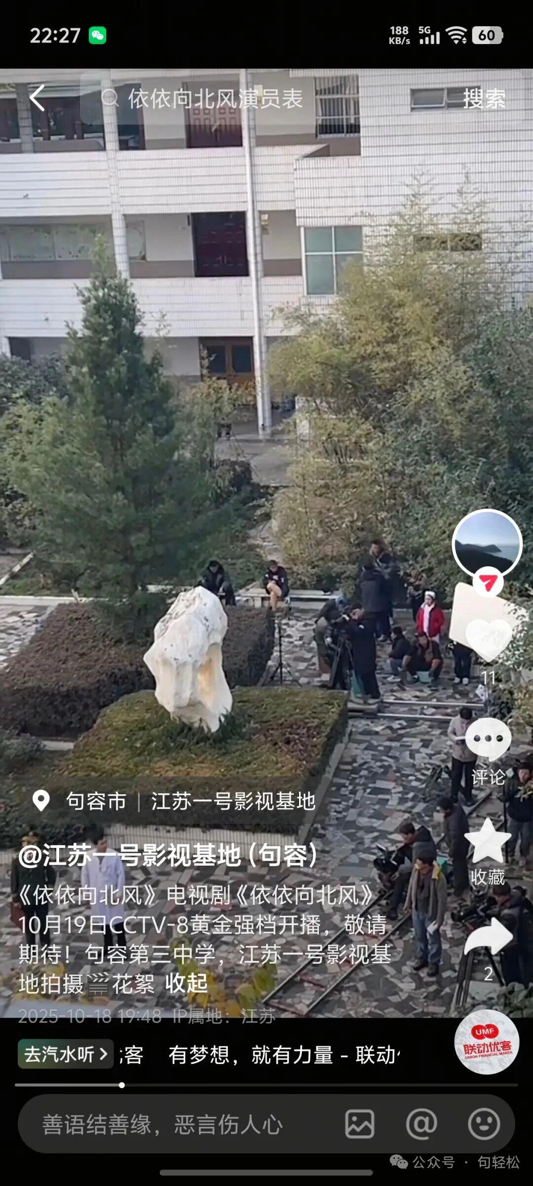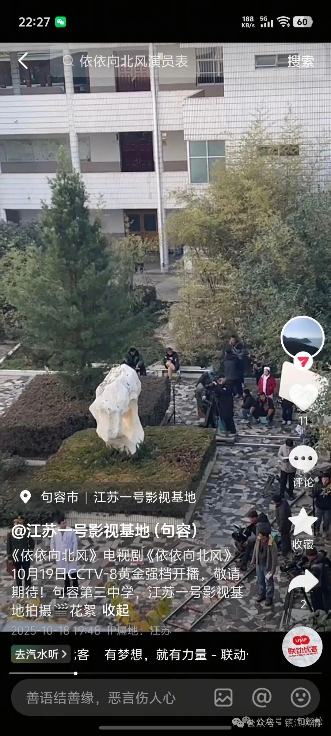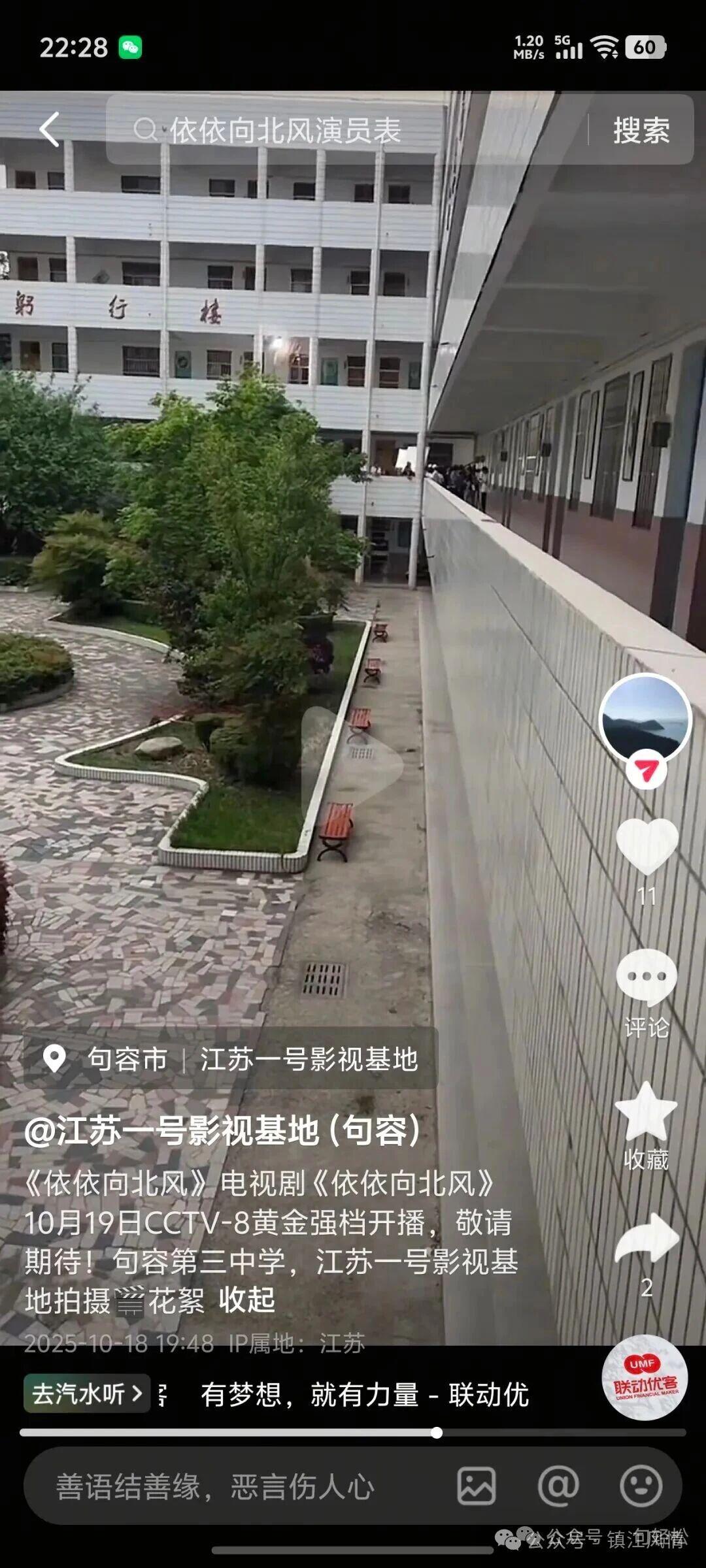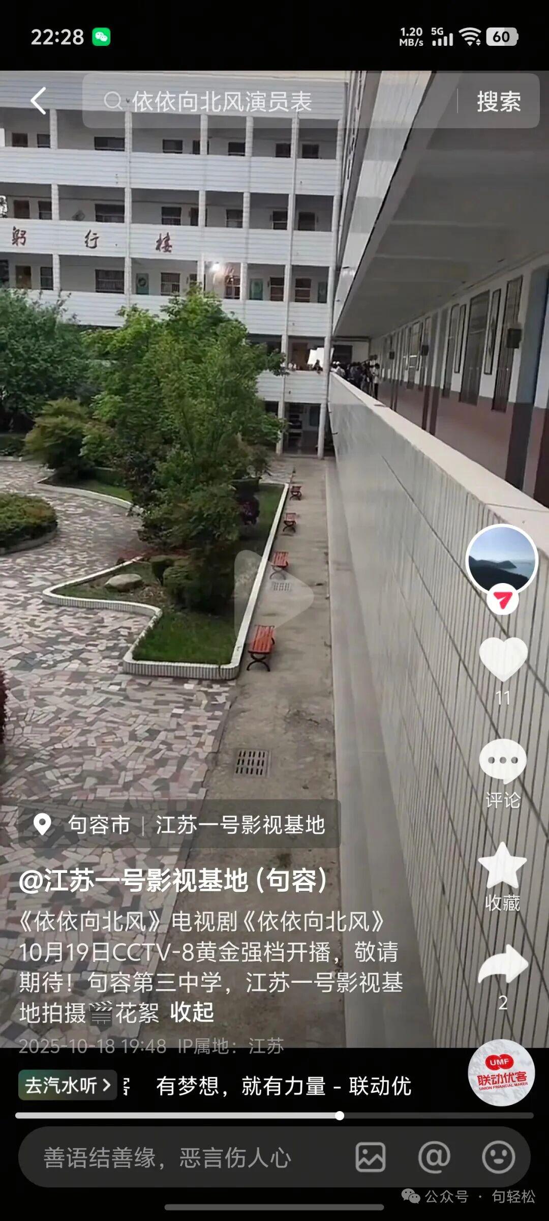 明晚19:30,《依依向北风》 在央视八套播出。这部剧不仅在南京多地取景,更在镇江句容句容的江苏一号影视基地完成了部分拍摄。值得一提的是,句容市第三中学也曾为其提供校园取景地。这是镇江的句容市第三中学继《奔赴星辰的我们》之后又一次作为热播剧的校园取景地。