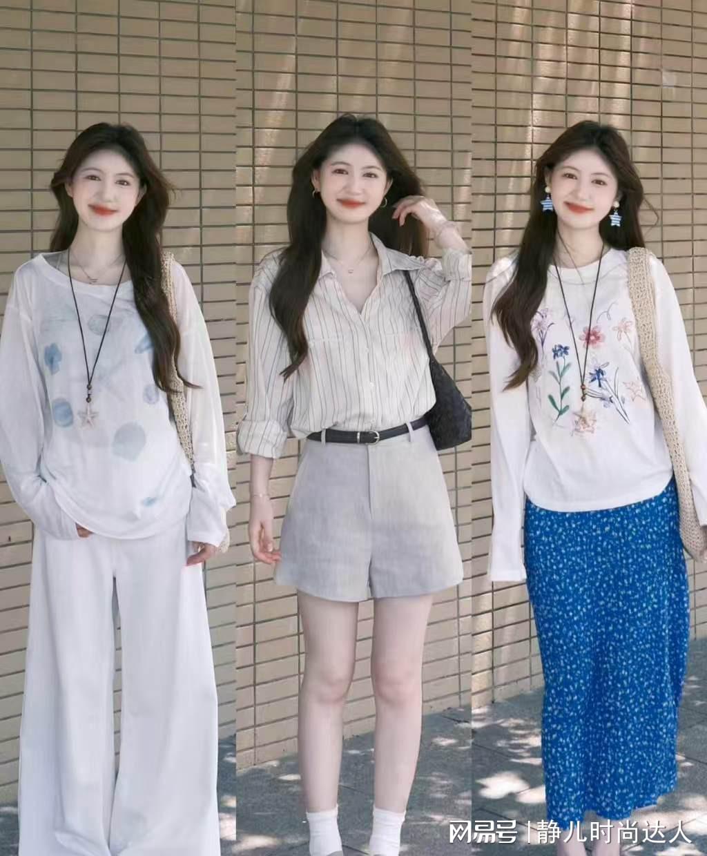 建议大家试一试短上衣和白色长裙或白色长裤的搭配,不仅有利于原本腿型的遮挡和润色,也能让她们的身材比例,看起来更加的出众和美观。
