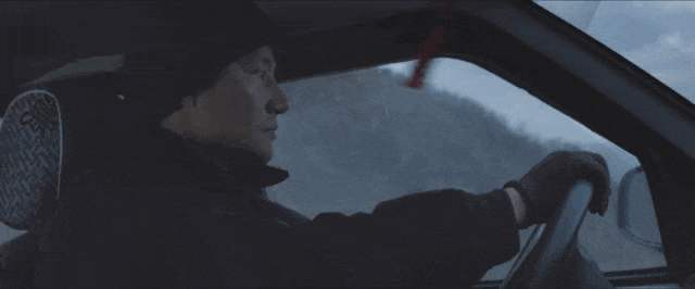 黄轩饰演的倪向东,开着一辆破面包车,神情紧绷,后座放着一个大木箱。