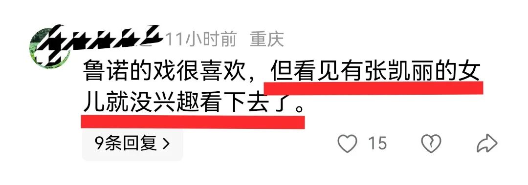 有网友吐槽,“看见有张凯丽的女儿就没兴趣看下去了”。
