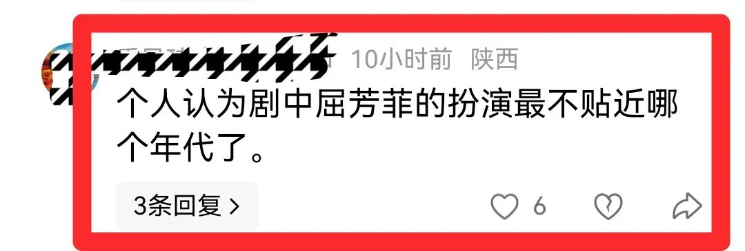 有网友说,“个人认为剧中曲芳菲的扮演最不贴近那个年代了”。