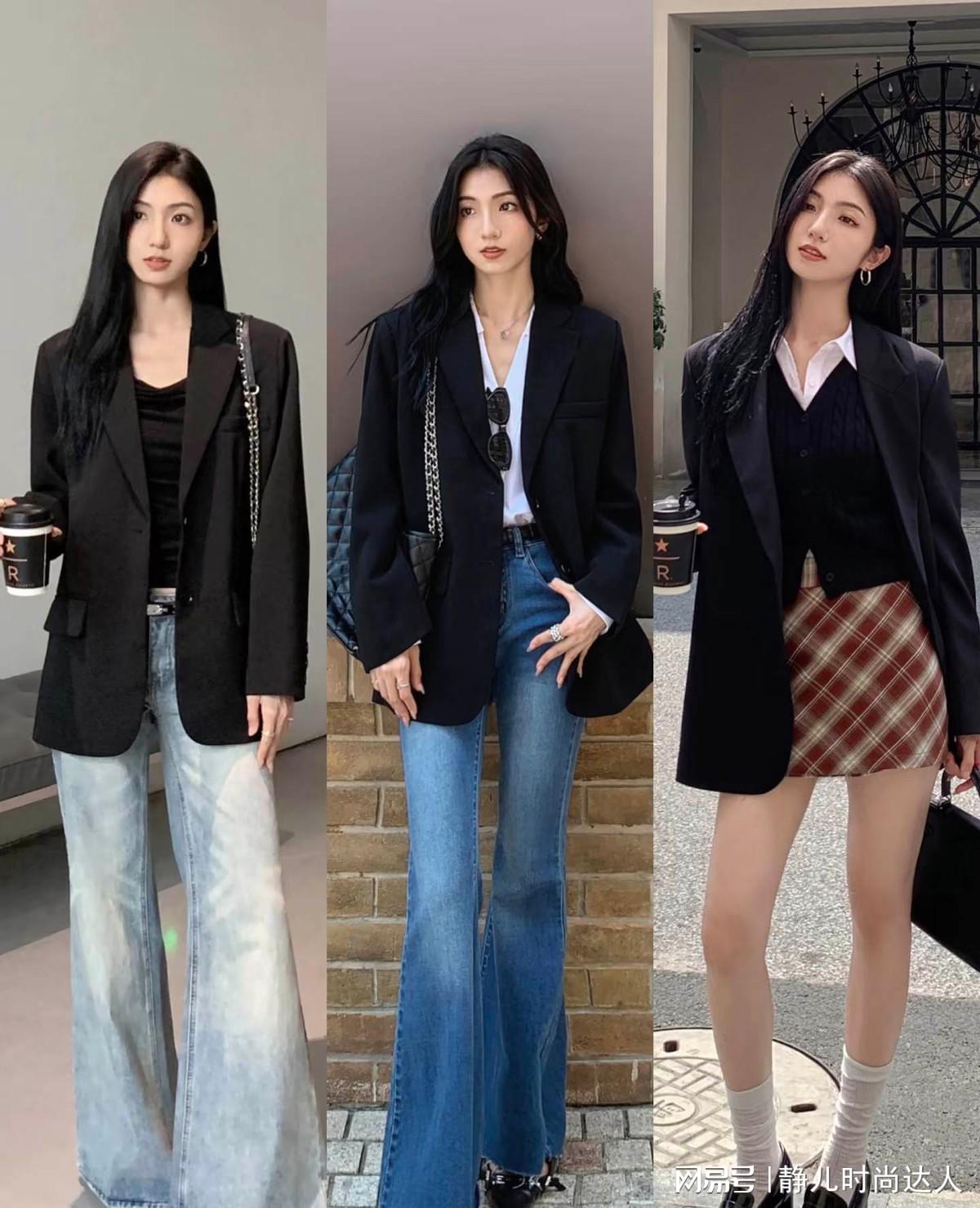 而西装尤其是黑色西装,就是不少成熟女性喜欢的单品,这种服饰可以带来一定的显瘦的效果,在外观的塑造上,比较的简约,对身材有着一定的收缩的作用。用黑色西装可以展现出各种穿搭风格,搭配牛仔裤,也立马瓦解它太正式的感觉。