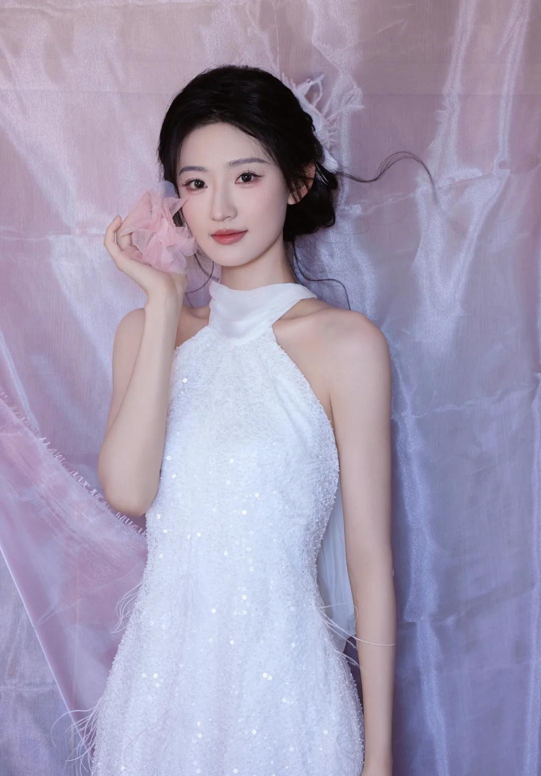 - 杨雨潼则选择了白色挂脖设计长裙出场,本应仙气缭绕,但由于身形过于纤瘦,视觉效果略显单薄。