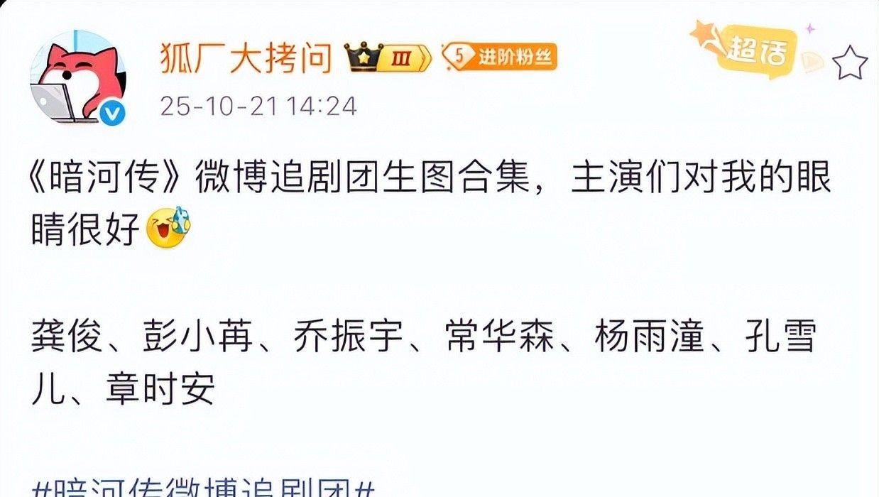 - 但最近上线的新剧《暗河传》却掀起不小波澜,开播仅两天,“#暗河传微博追剧团#”话题迅速冲上热搜榜首,阅读量呈爆发式增长,社交平台讨论热度居高不下。