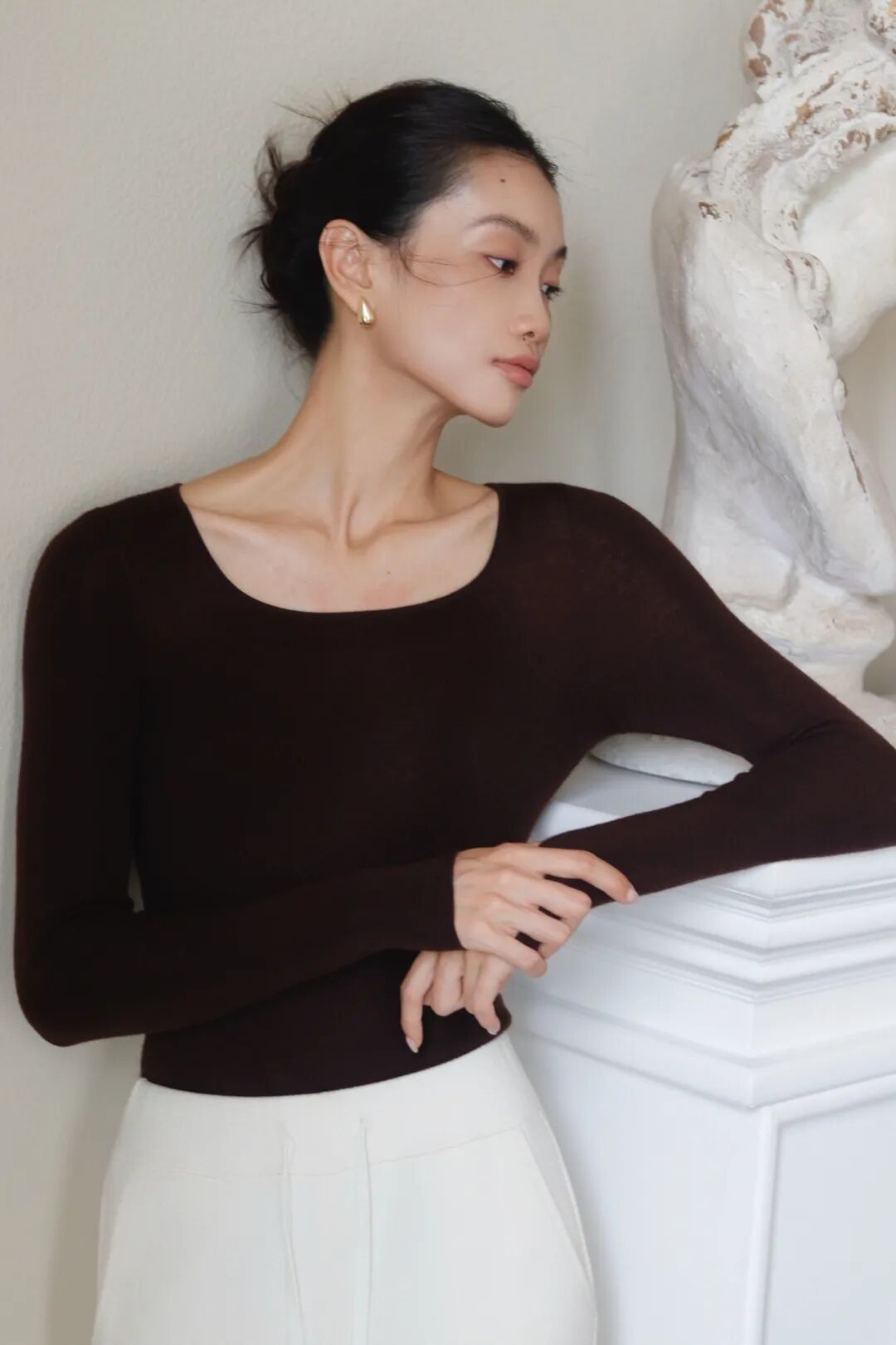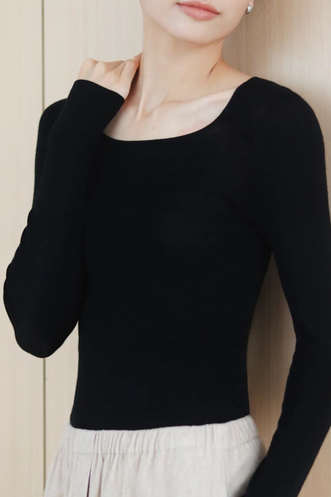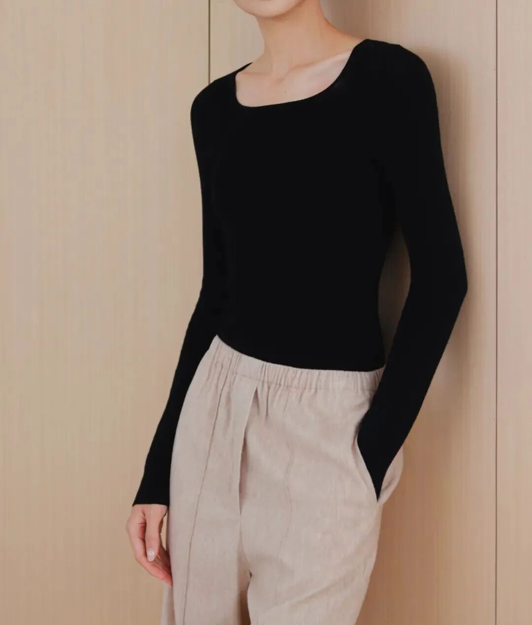 虽然很 耗料耗时耗人力,但质感、舒适感真的不是一般打底衫能媲美的, 每一处都能紧密贴合身型,就像长在身体上似的。质感&版型兼具的衣服,才能营造出不费力的时髦感。 ▼