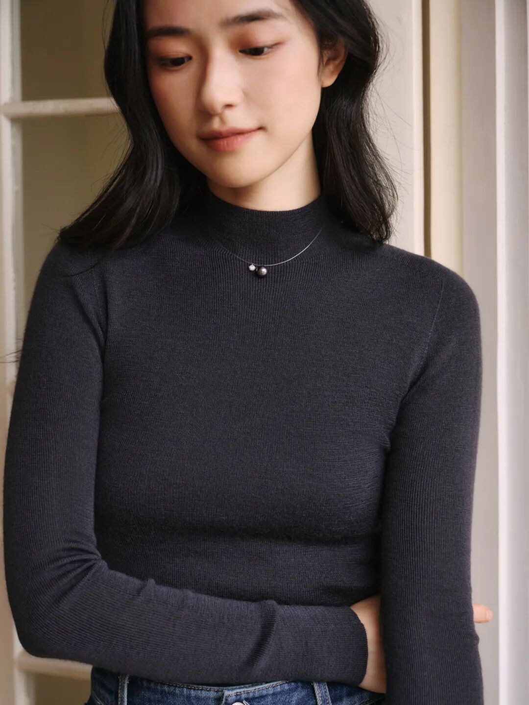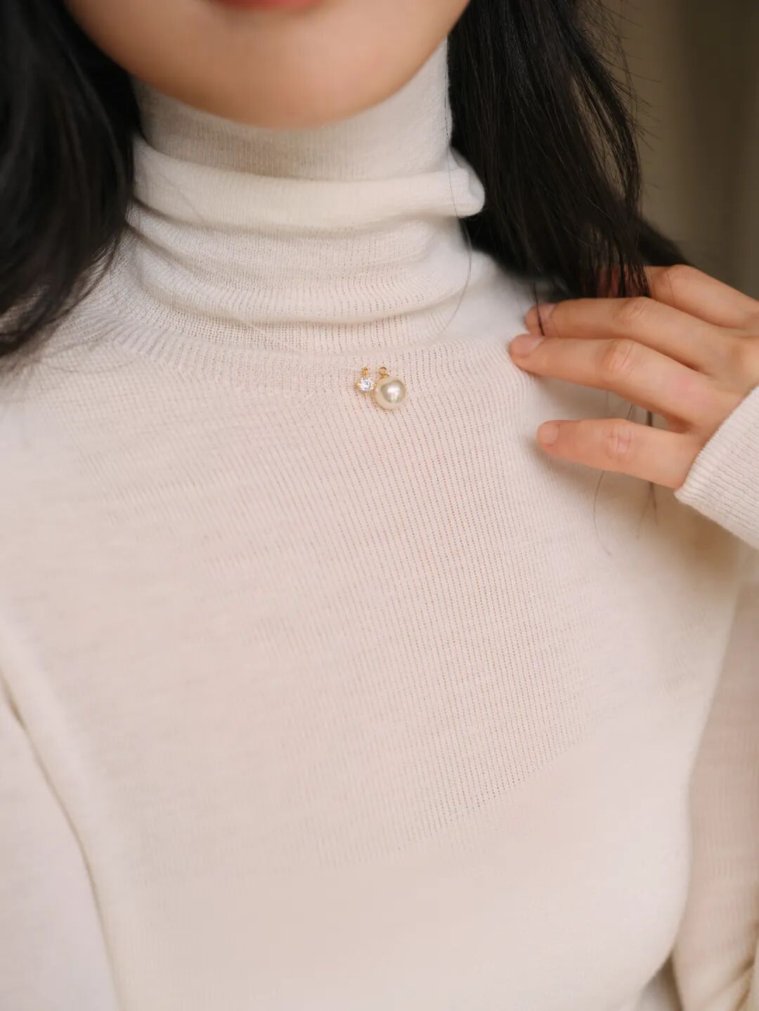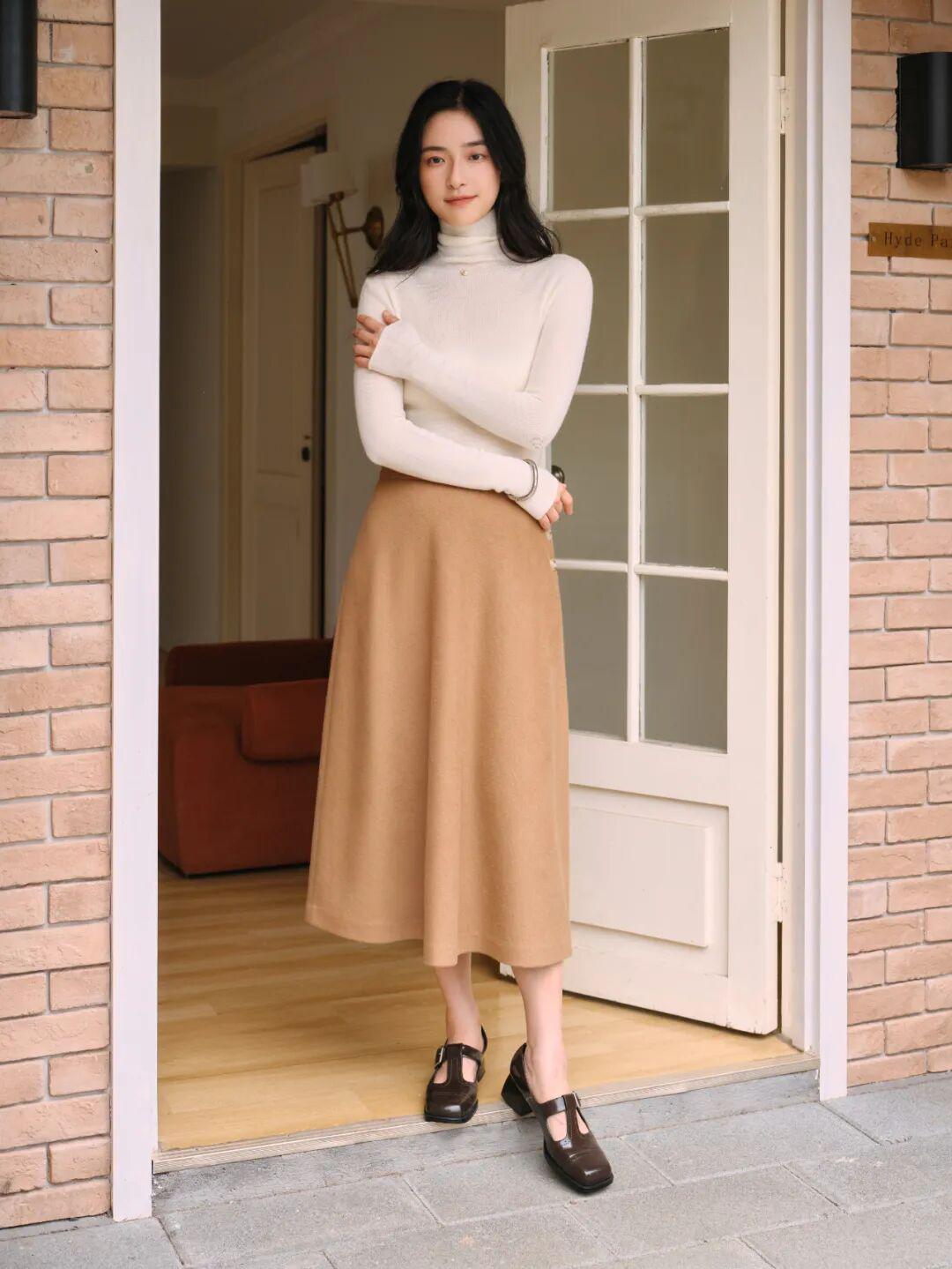 半高领呢,刚好能包裹住脖子的一小部分,完全不会埋没脖子,适合短脖星人,能小心机地勾勒天鹅颈。 ▼