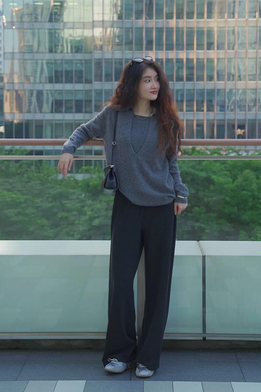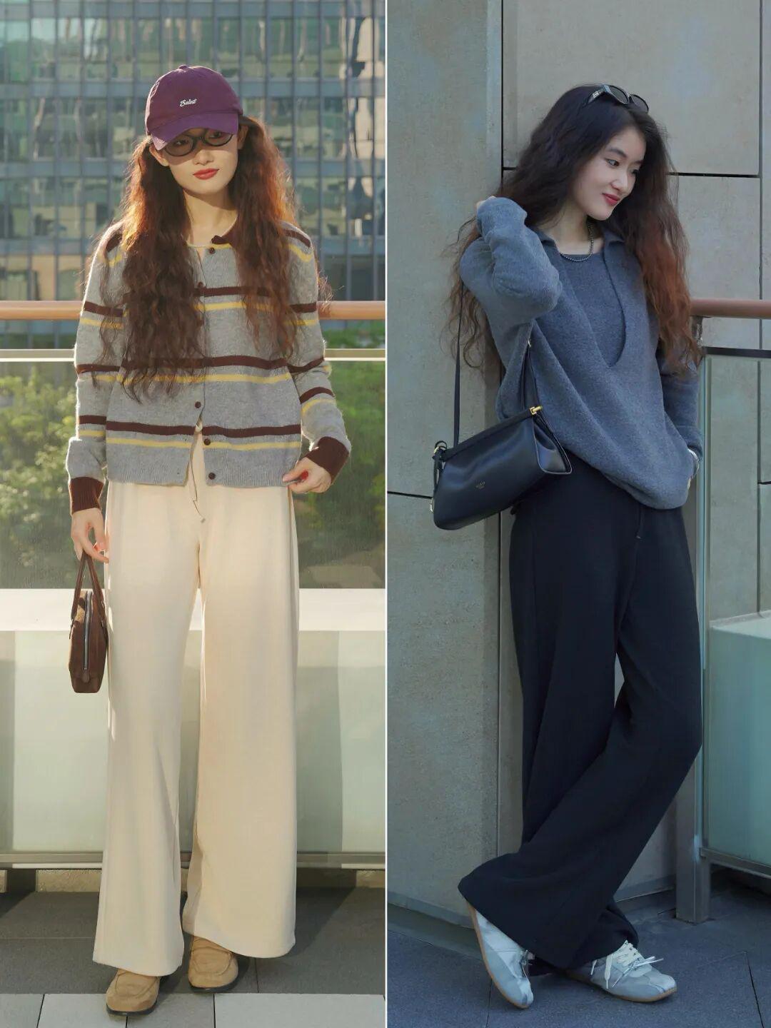 秋冬的裤子,垂坠感很重要,如果蓬蓬的就容易显壮、拖比例。