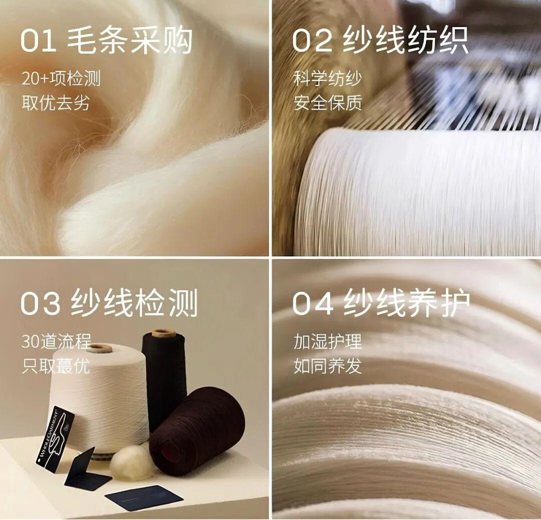 首先在毛条的采购上就非常严苛, 只精选顶级的美丽诺羊毛,还要经过20+项检测、30多道流程,只取最优的纱线,才能成为真正的扬子纱。 ▼