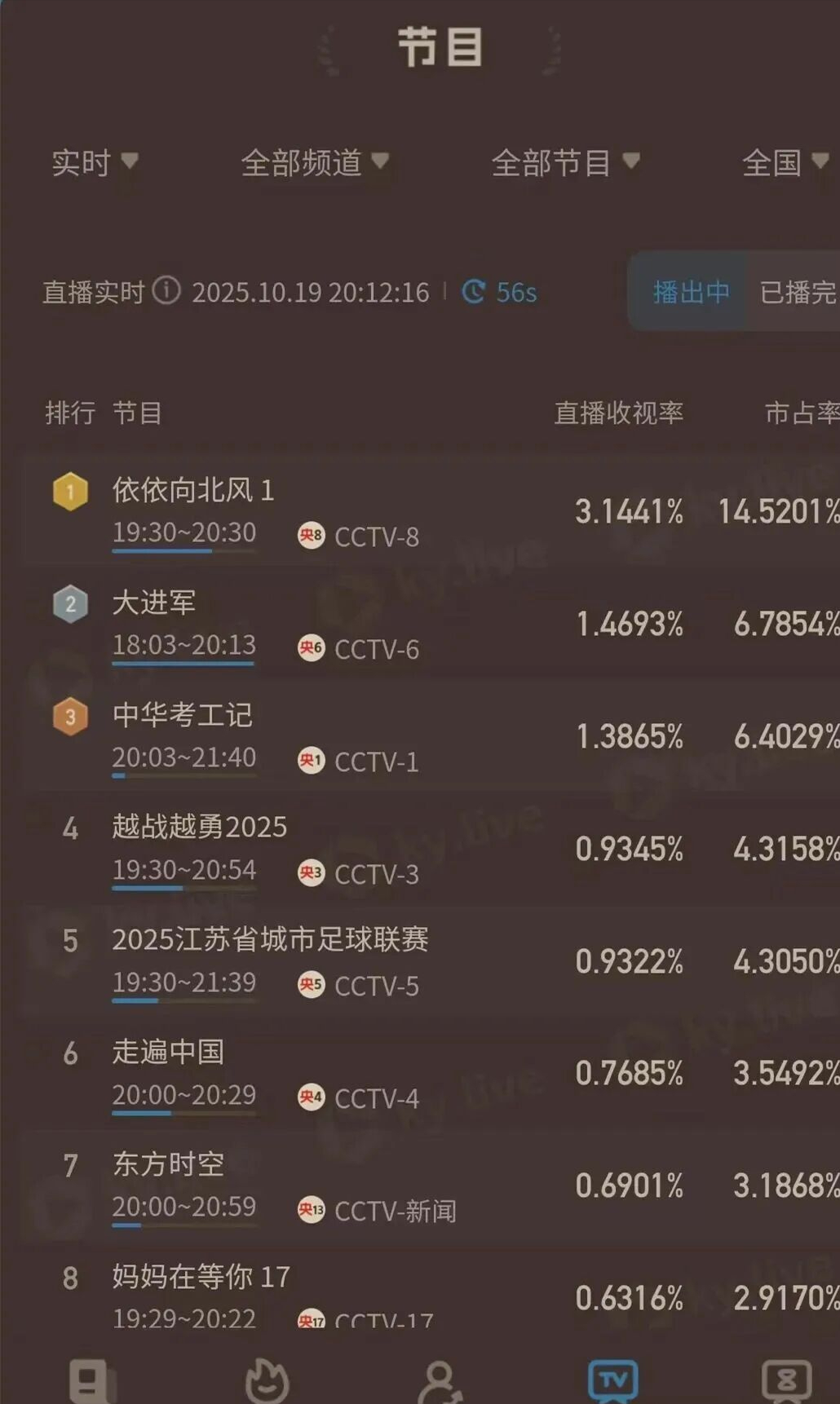 已经赶超了《沉默的荣耀》开播首日实时收视率,《沉默的荣耀》突首播也是很强的,第1集峰值破3%,峰值达3.07%,2集平均收视率超过2%,都创下了央视八套黄金档开局新高。如今《依依向北风》更是一山更比一山高啊,又破记录了,轻松拿下全国收视率第1,被业内评价为“年冠级走势”。