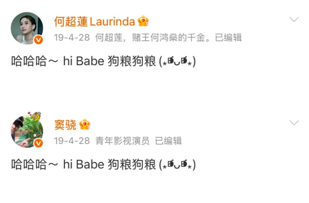 2019年4月28日,何超莲与窦骁发文正式官宣恋情。