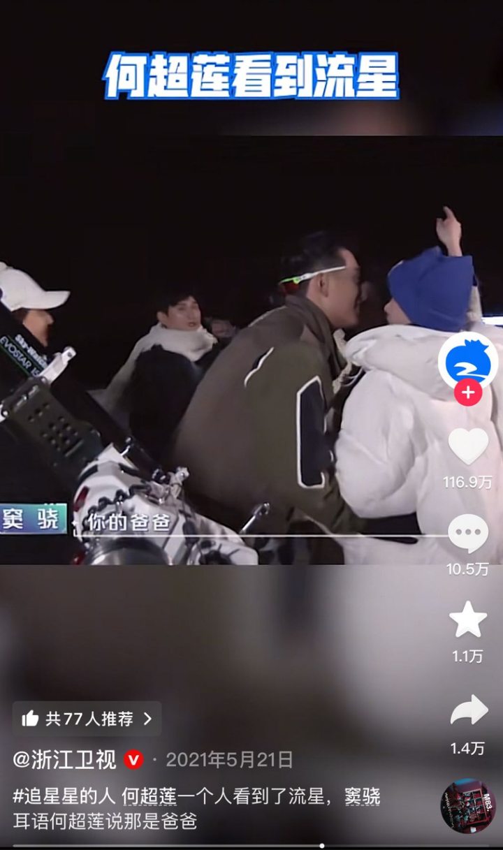 2021年,窦骁参加综艺《追星星的人》,何超莲曾作为惊喜嘉宾现身。夜晚,众人观赏风景时,只有何超莲一个人看到了流星,窦骁轻声告诉何超莲:“那是你的爸爸,所以只有你看到了。”