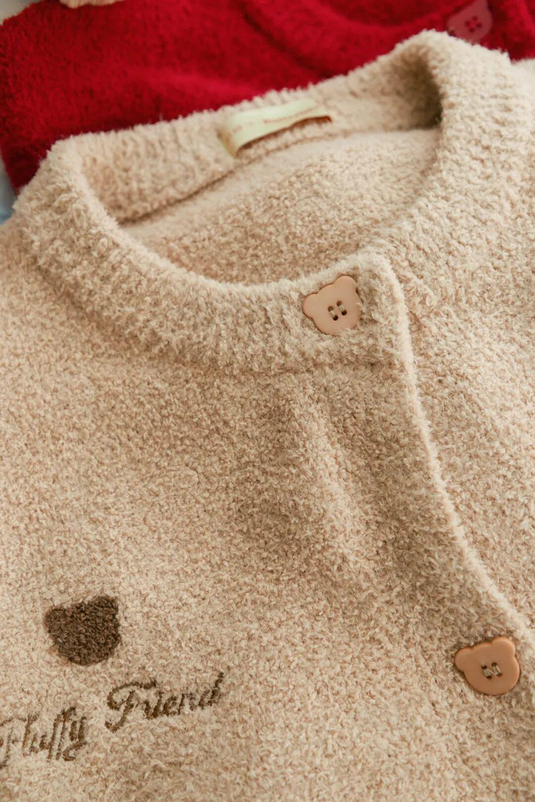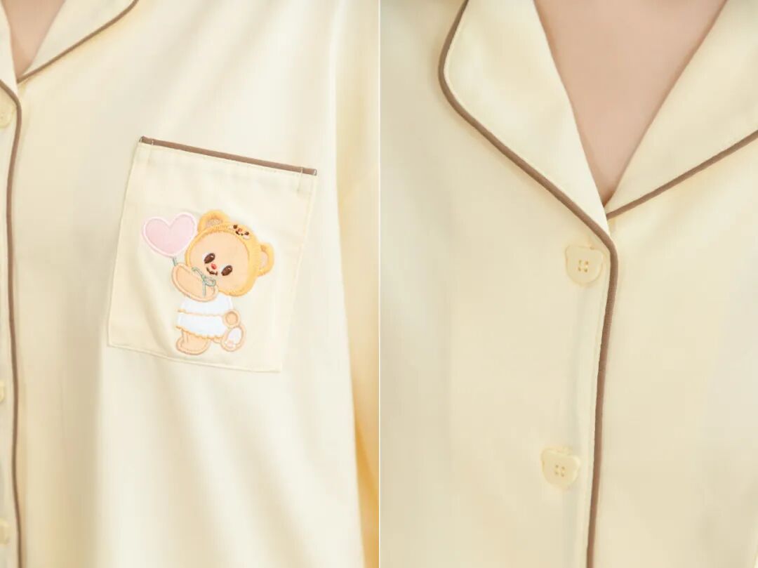 我最喜欢的是它的细节——口袋上有精致的小熊刺绣,连纽扣都是小熊造型,可爱得恰到好处。▼