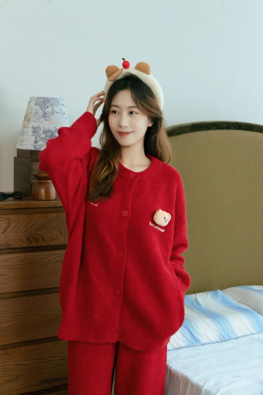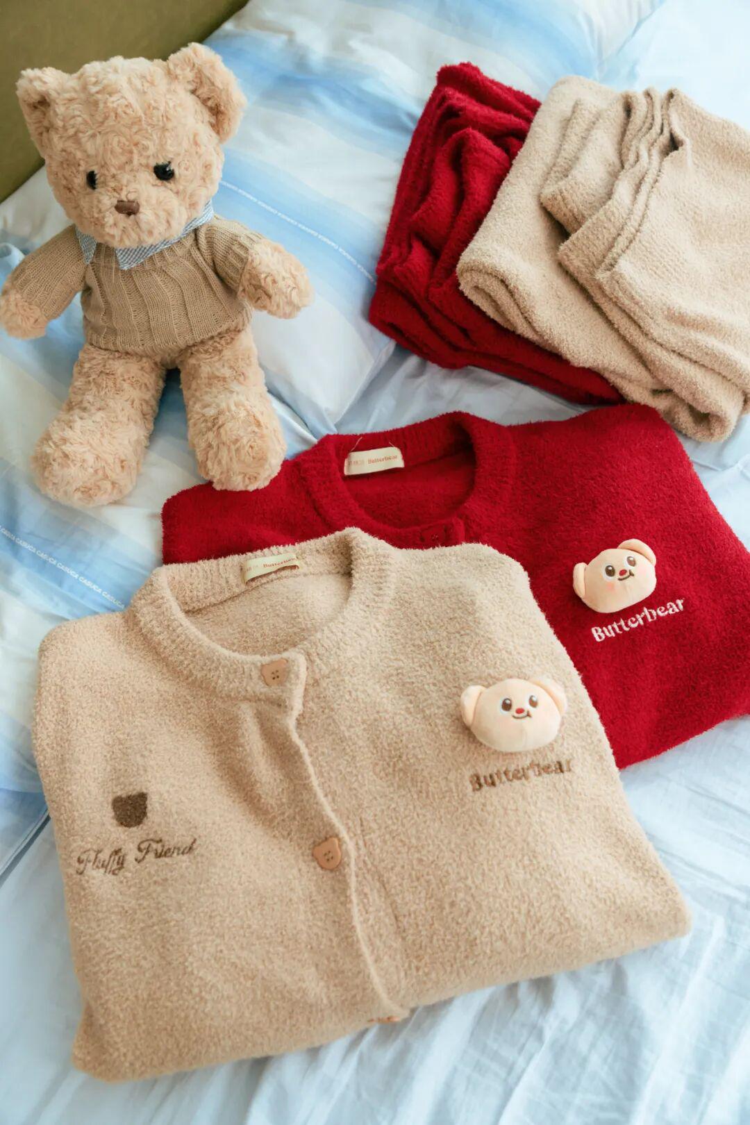 总觉得秋冬有点沉闷?这套睡衣就是一副行走的“快乐处方”。整体的颜色和图案都是撞色呼应,满满的小熊图案,在灰蒙蒙的冬日里,心情都瞬间被点亮了。