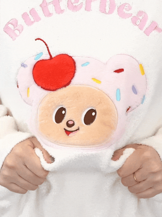 最戳中我的是胸口的黄油小熊!采用绒布贴布绣花工艺,让黄油小熊的形象立体又软萌~▼