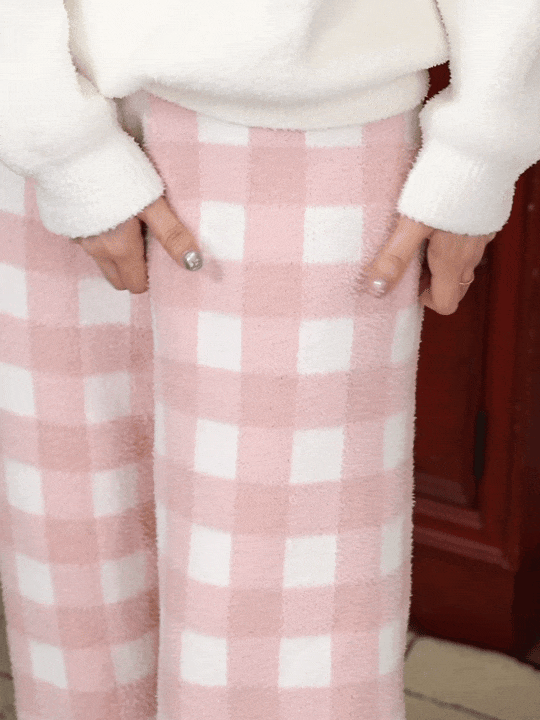 它的裤子也很有小心思,做成了棋盘格样式,让基础款睡衣瞬间多了设计感,在家穿出自在好心情。▼