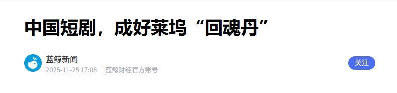 信源来源:2025-11-25蓝鲸新闻 中国短剧,成好莱坞“回魂丹”