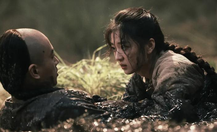 生死当头,两人含情脉脉,诉说儿女情长,堪称沼泽地里的杰克和露丝。