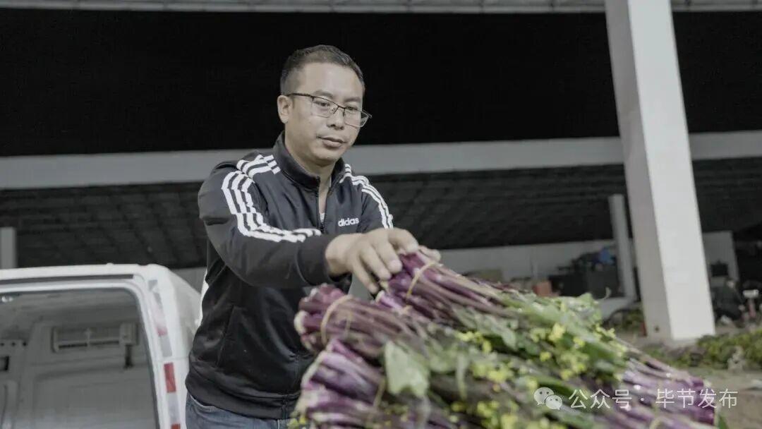 赵庆升查看刚从基地运送到物流园的红菜薹