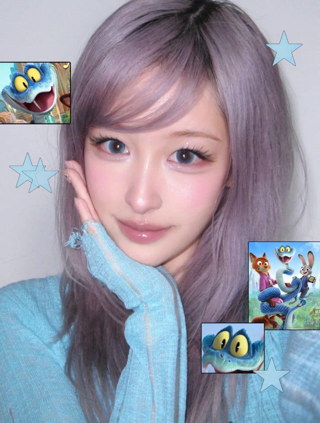 以蝰蛇为原型的盖瑞,对应的是近几年大火的“恶女蛇塑”。蓝绿色系的美瞳注入灵魂,以及添加眼头高光+银白色细闪眼影,来打造冷感妆容。