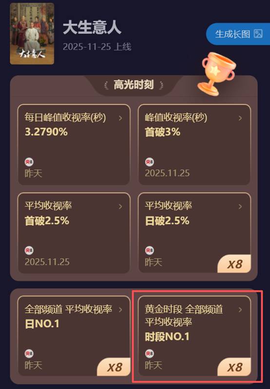 首播收视率破3,收视峰值高达3.4,连续八天黄金时段收视率第一,年终岁末,2025的“剧王”候选又添一员猛将。