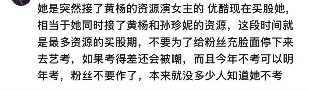 更多人则从职业角度提出质疑,对她放弃考试的选择深表困惑及不认同,演员这行拼到最后还是看底蕴,统考不仅是学历门槛,更是入行的基础敲门砖。