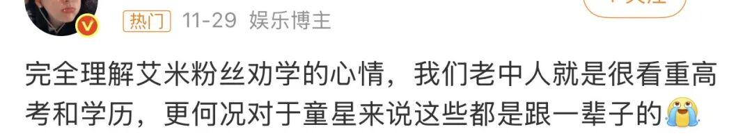 更何况是学业这种关乎一生的人生大事,咱老中人本来就把高考和学历看得极重,对艺人而言,这更是要跟一辈子的底牌,自然会格外较真,热议度比私生活话题只高不低。