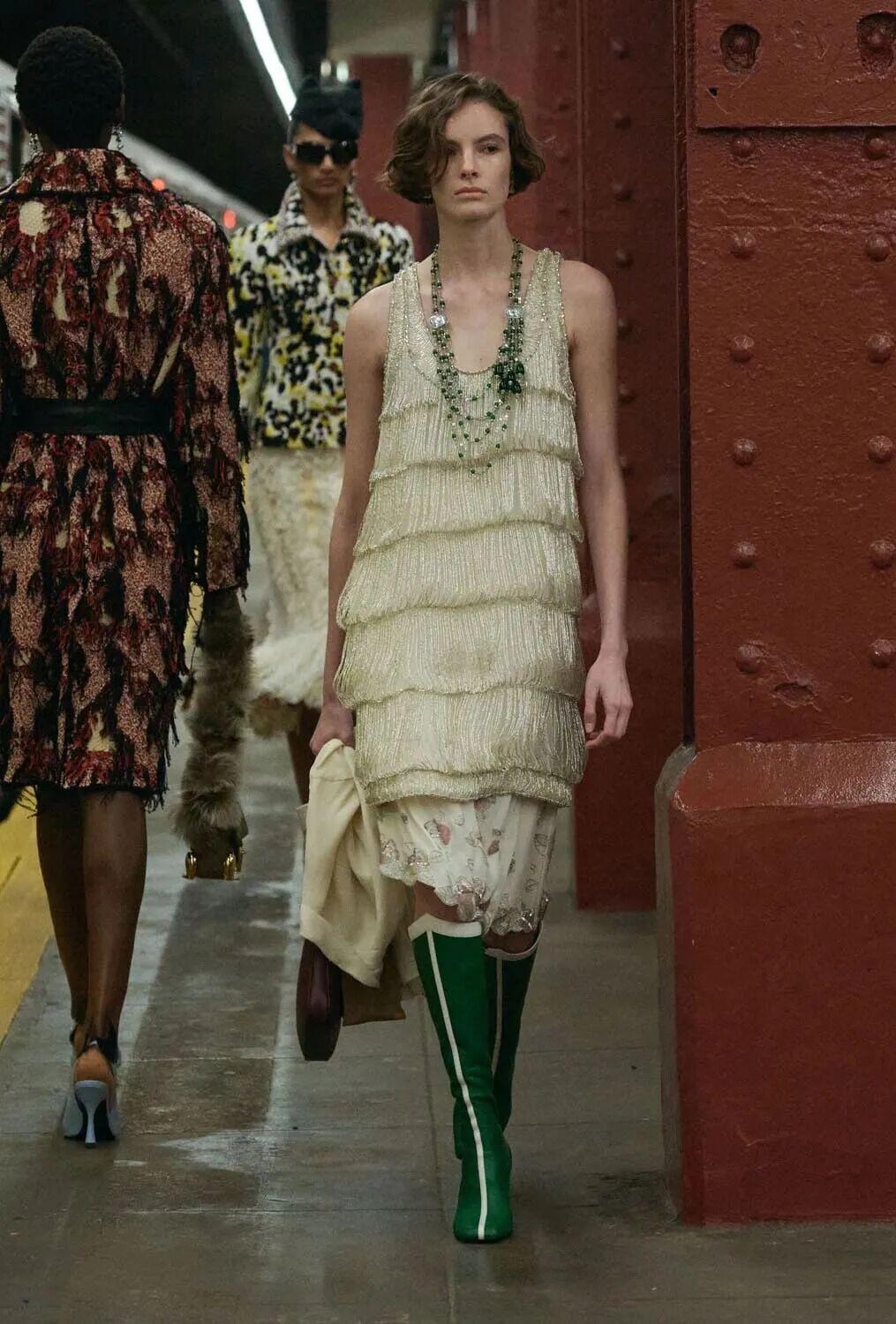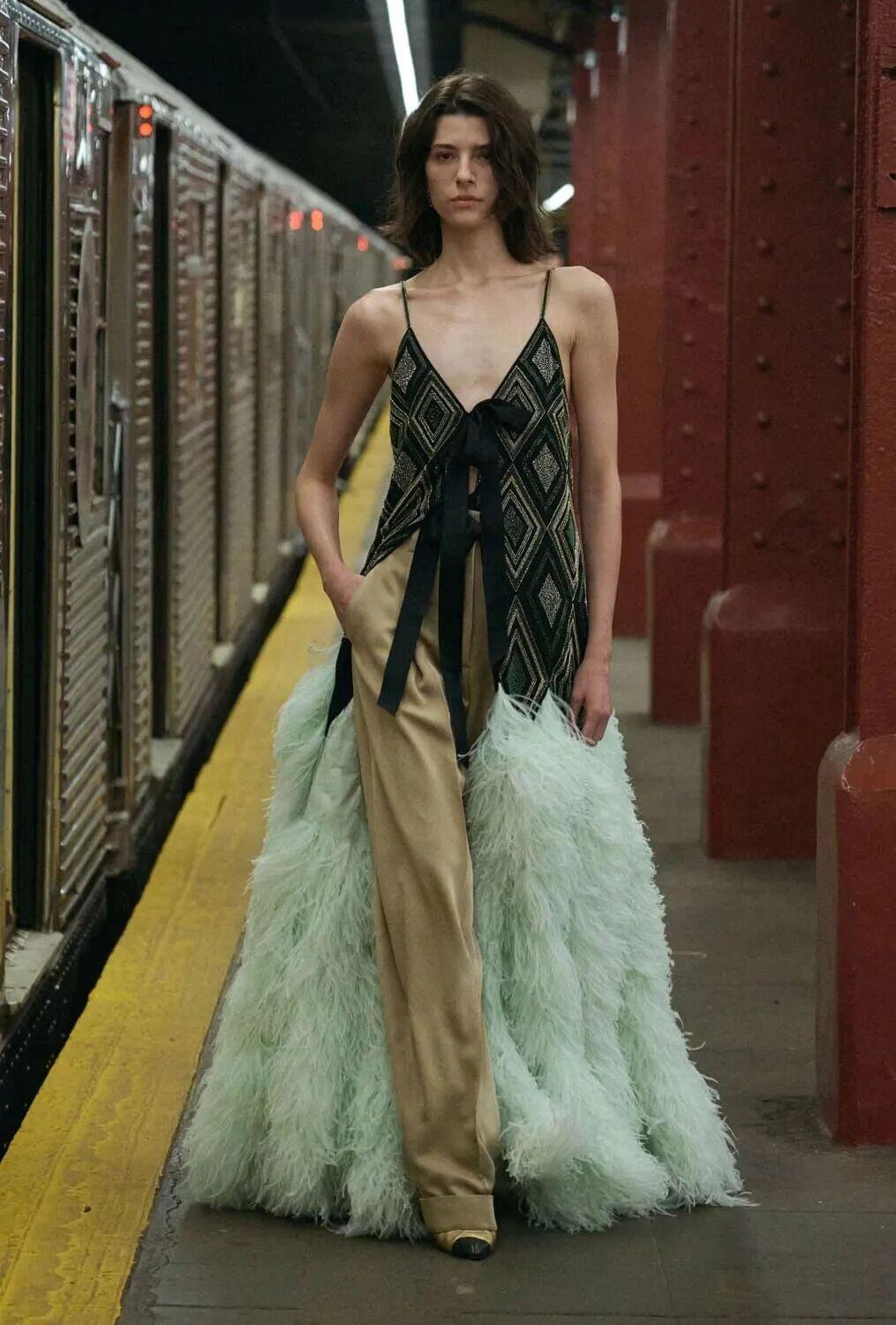 Matthieu Blazy表示:“纽约地铁令我着迷,因为它是世界上为数不多社会各阶层真正共享的空间,一个消解了等级的地方。”这次的选址本身就是一场女性宣言。