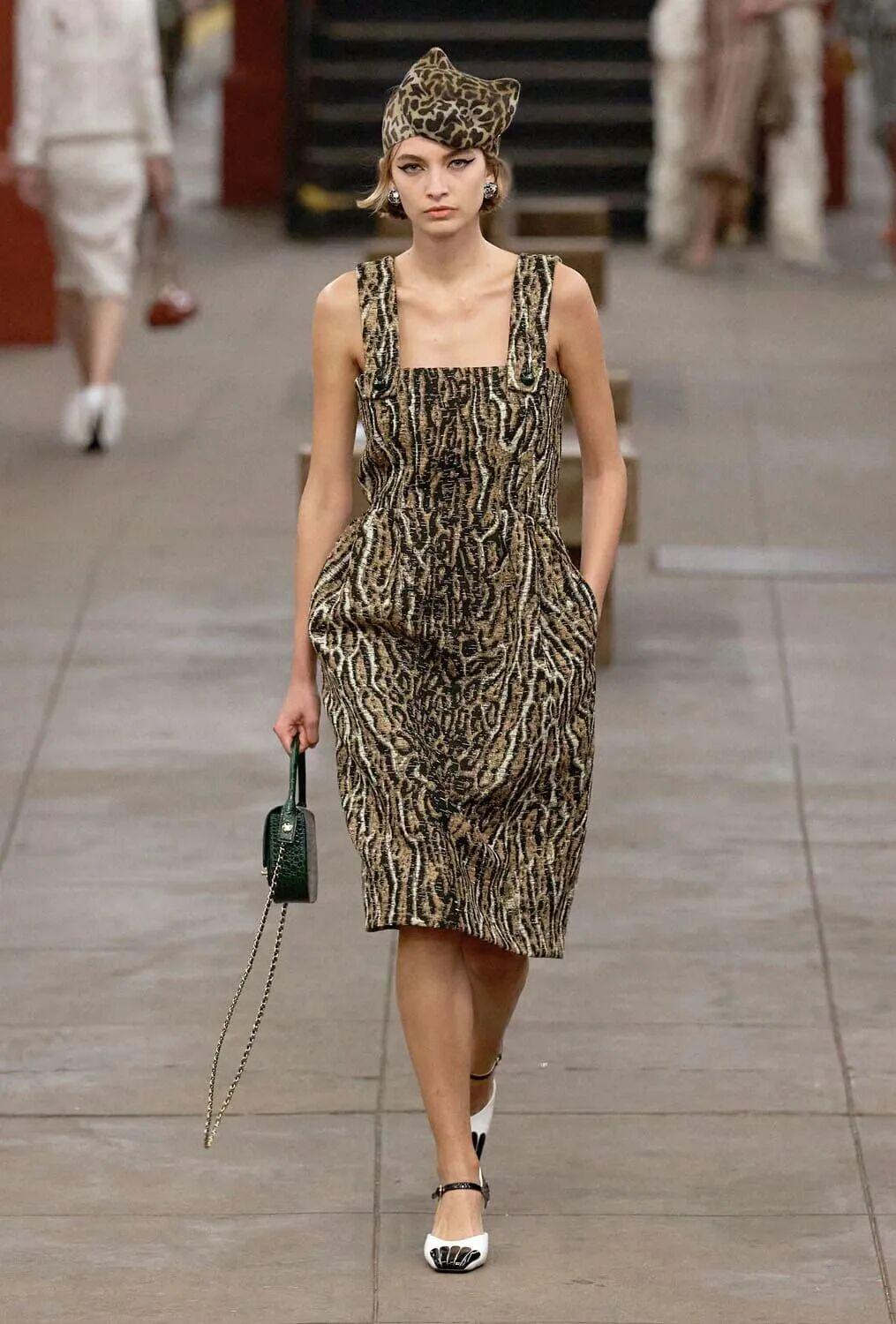 它被运用于经典套装上,以及阔腿裤、修身连衣裙,甚至运动风的发带之上,褪去了传统的野性象征。