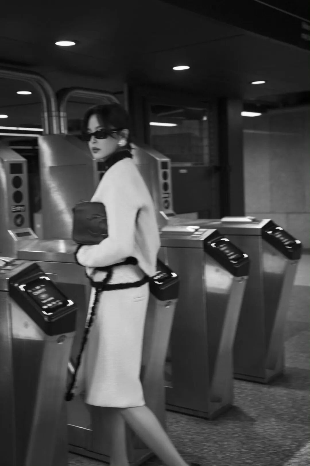 当系列行进至后半程,地铁站的昏暗被一系列晚装造型骤然点亮。
