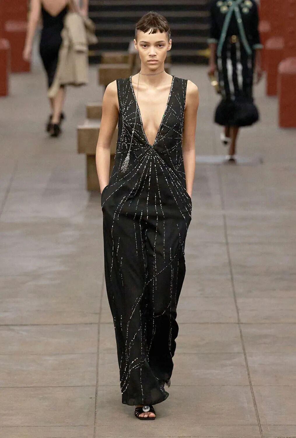 这是新任创意总监Matthieu Blazy为品牌打造的首个高级手工坊系列(Métiers d’Art),81套造型如同一部在隧道中展开的都市电影。