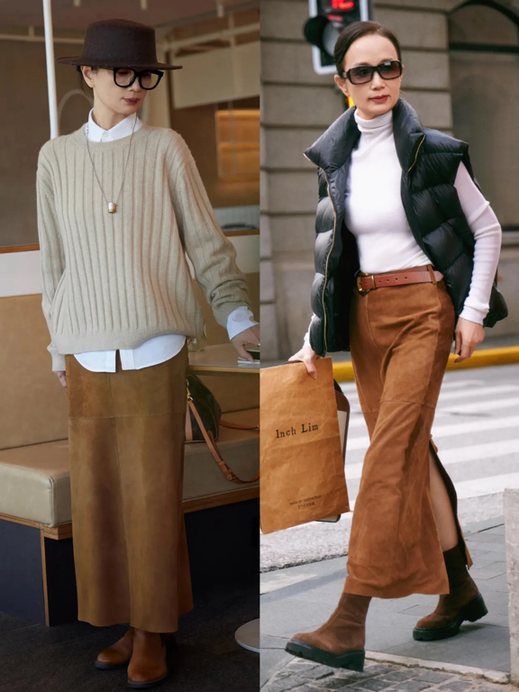 如果穿裙子,版型则首选A字裙、茶歇裙,长度控制在膝盖上下3厘米,既优雅得体,又能修饰腿部线条,走路自带轻盈感。