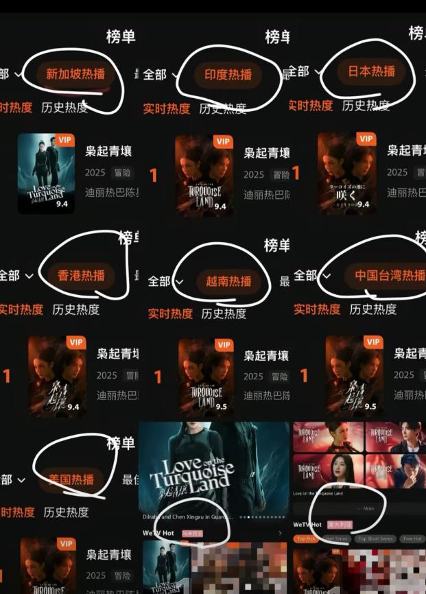 有粉丝不相信这剧的热度能扑街到这种地步,怀疑热度是被平台恶意打压,还晒出了剧在其他几个国家热度登顶的截图。