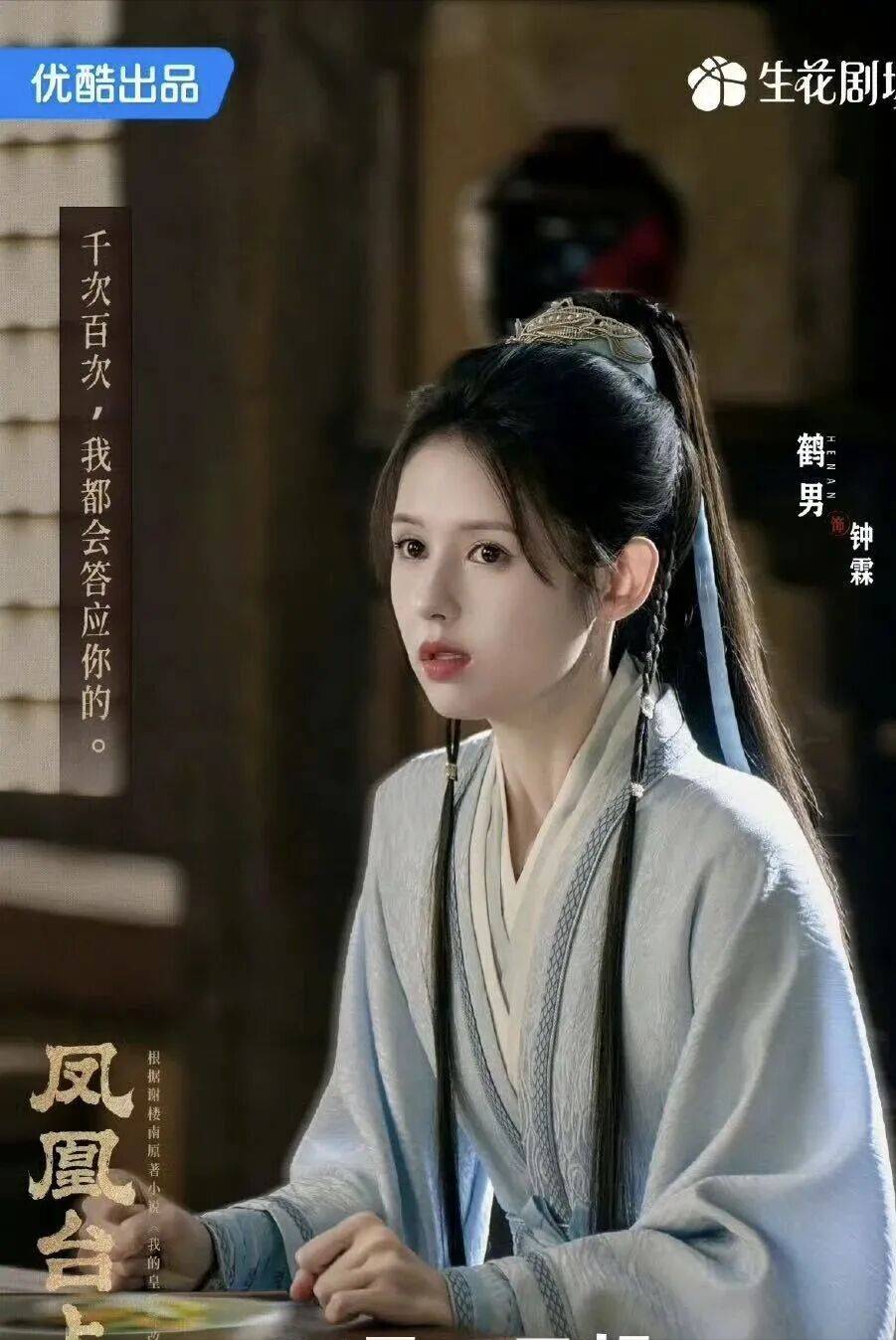 《凤凰台上》她又是女二钟霖,是凤来阁阁主,凌苍苍的好友,善良正直的侠女,和豫章王萧千清是欢喜冤家,可惜最终阴阳相隔了。