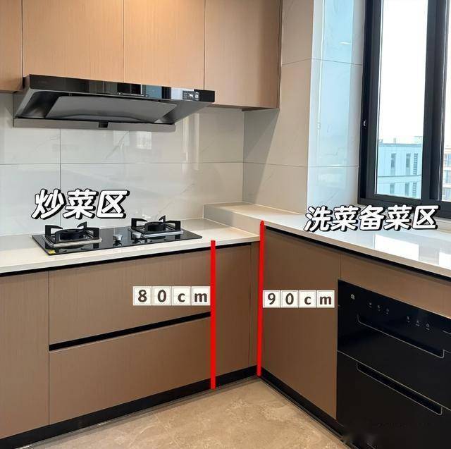 根据自己的身高定制高度,把厨房划分成两个区域。