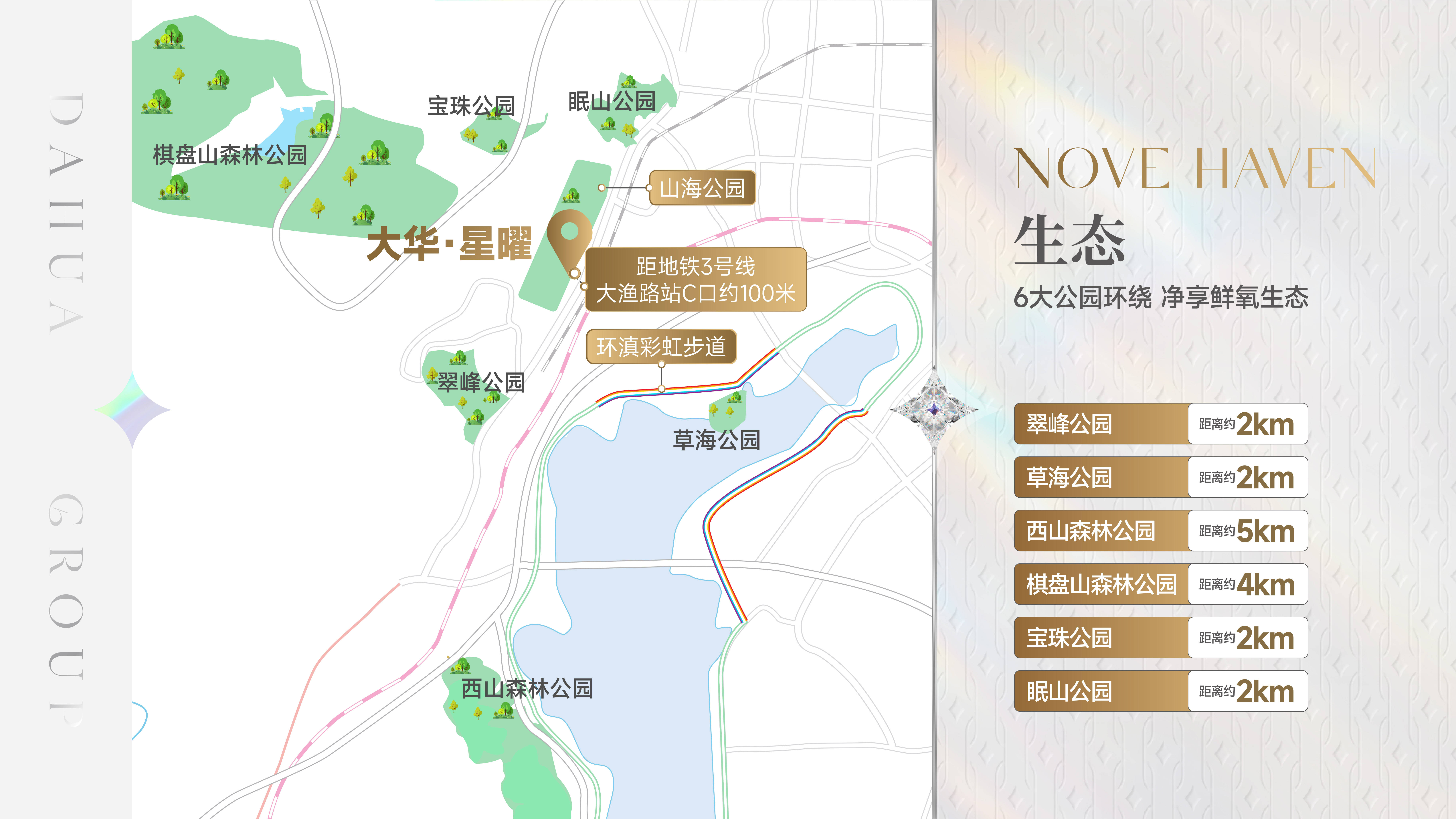 翠峰公园、草海公园、西山森林公园、棋盘山森林公园、宝珠公园、眠山公园六大生态公园环伺。