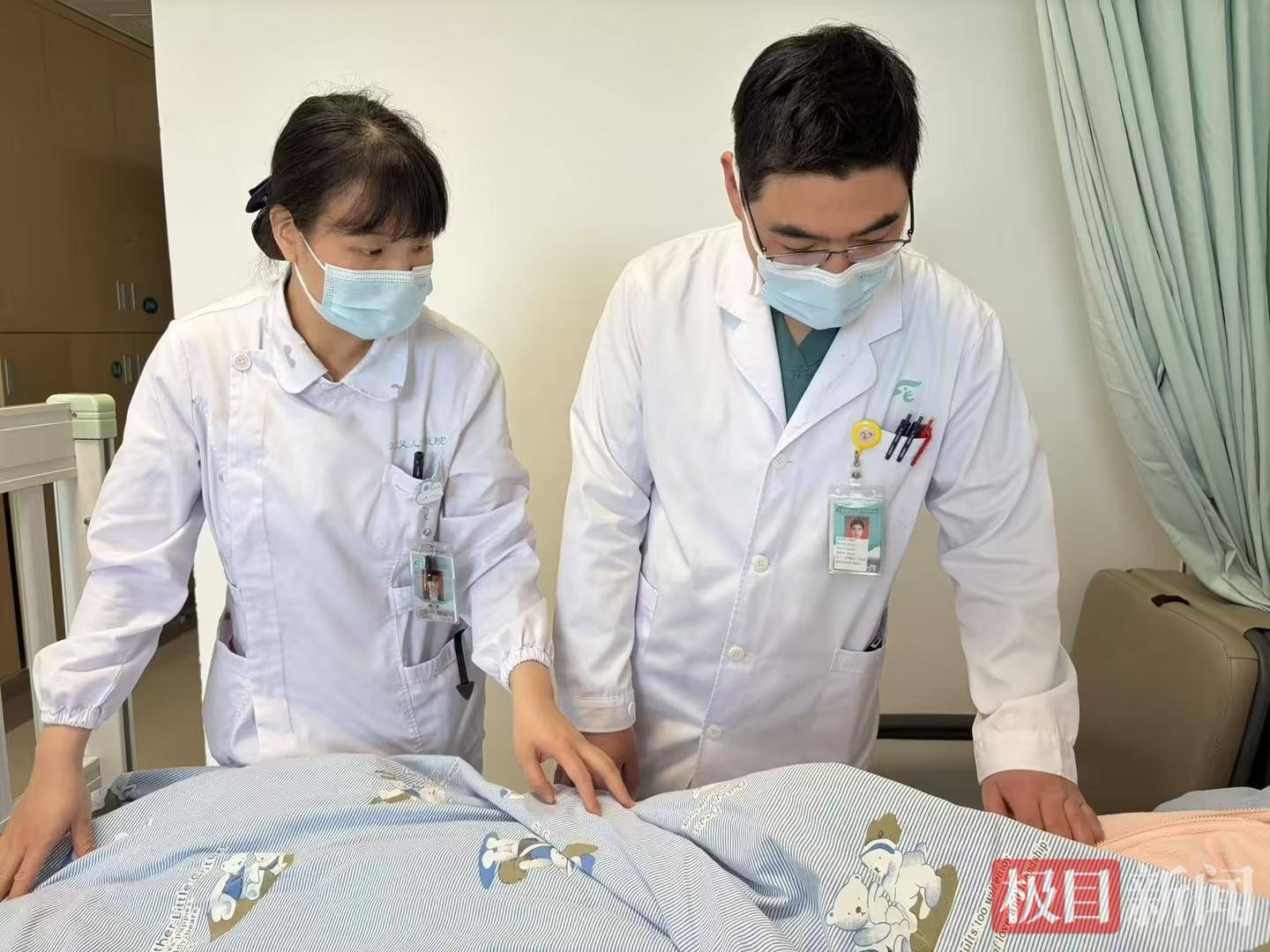 主刀医生鲍海滨(右)查看孩子恢复情况
