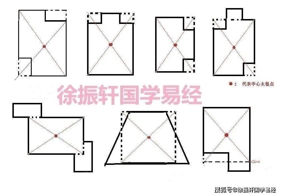 如何确定室内部分的房屋的中心太极点,见下图。