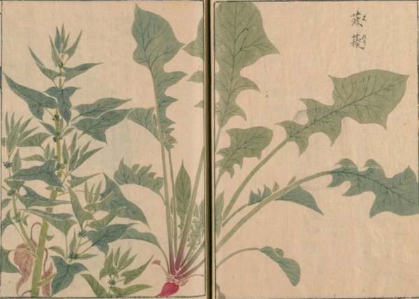 《本草图谱》中的菠菜,右上角是汉字“菠薐”