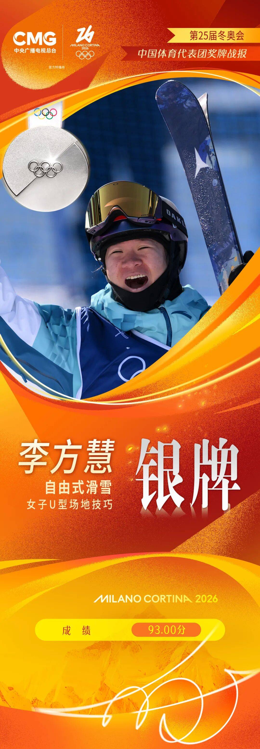 央视新闻消息,米兰-科尔蒂纳冬奥会,自由式滑雪女子U型场地技巧决赛,中国选手谷爱凌夺得金牌,李方慧获得银牌。中国队包揽金银!