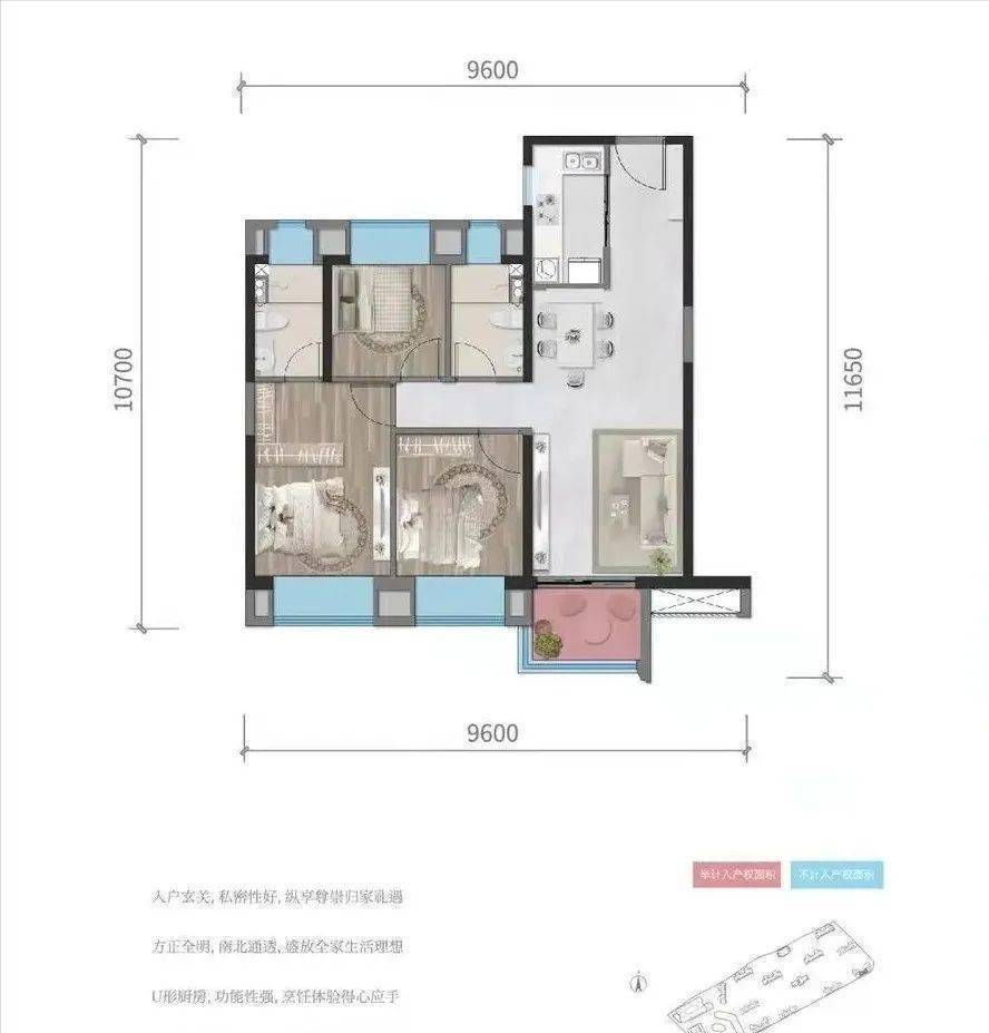 C户型115㎡,三室两厅两卫