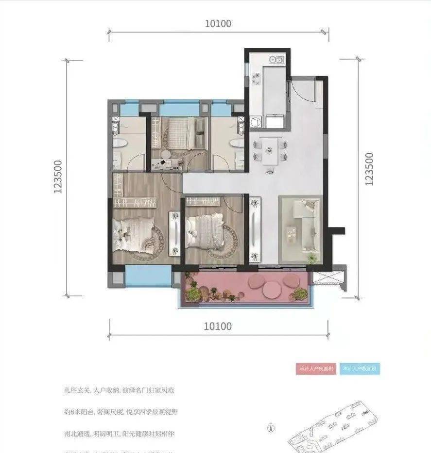 B户型99㎡,三室两厅两卫