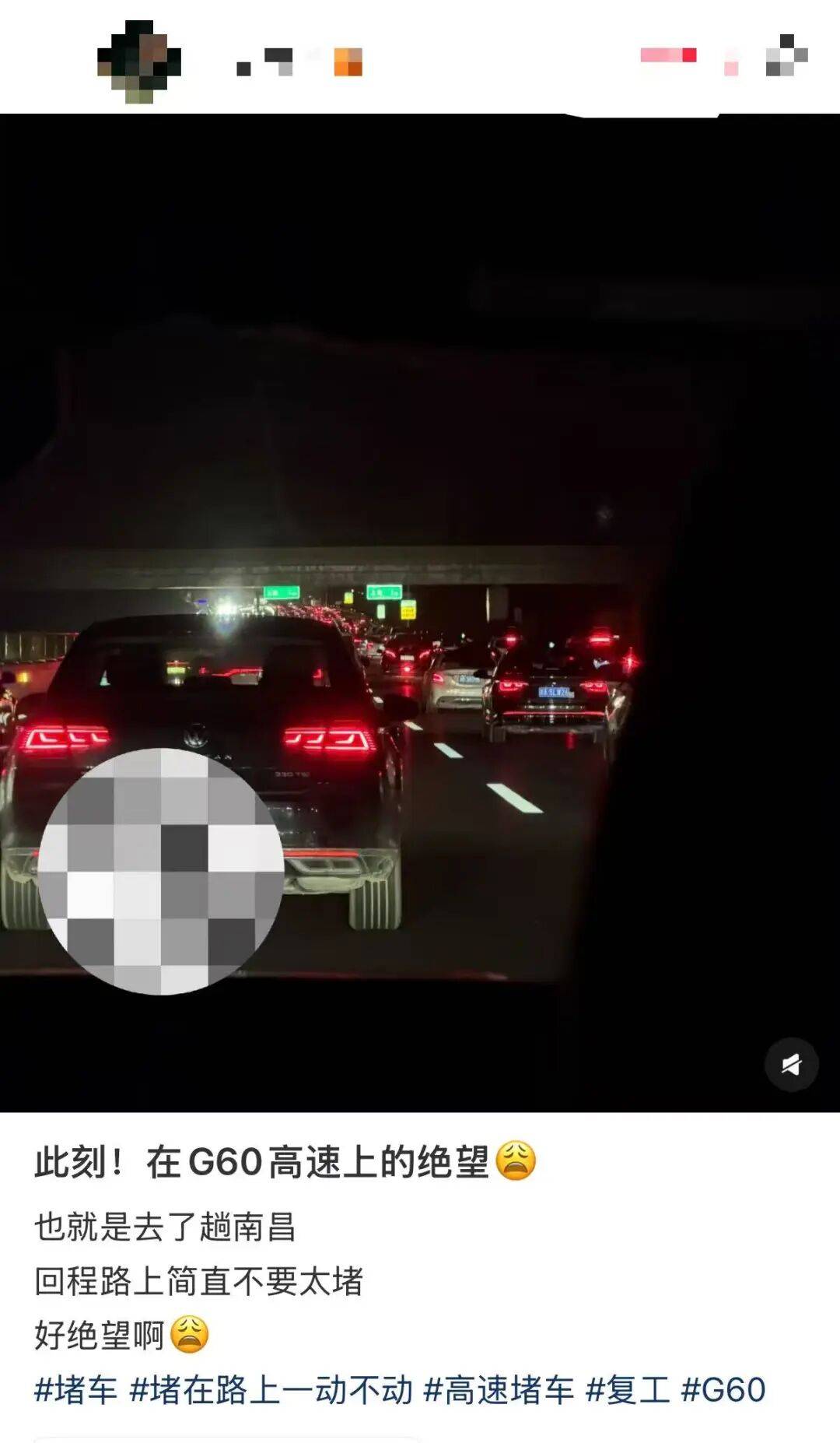 返程在G60高速上“绝望”